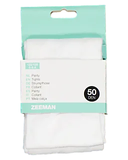 Deze witte panty heeft een dikte van vijftig denier, waardoor hij stevig aanvoelt en je benen licht bedekt. De stof is gemaakt van polyamide en elastaan en rekt soepel mee, zodat je de panty fijn kunt dragen en vrij kunt bewegen. Door de effen kleur is de panty makkelijk te combineren met verschillende outfits. Geschikt voor jongens en meisjes.
