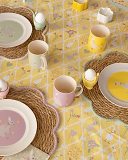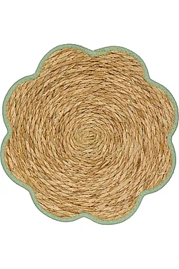 Deze placemat heeft een natuurlijke, gevlochten structuur met een golvende rand en een groene bies. De onderlegger bestaat uit 80% gras en 20% katoen, waardoor hij stevig aanvoelt en praktisch is in gebruik. Met een lengte van 37 centimeter leg je hem makkelijk op tafel, zodat je oppervlak beschermd blijft tegen kringen en vlekken.