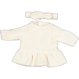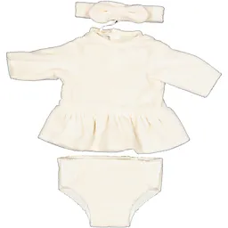 Deze poppenkleding bestaat uit een witte top met lange mouwen, een rokje en een haarband. Gemaakt van stevig en makkelijk te reinigen polyester. Door de elastische tailleband trek je het broekje eenvoudig aan en blijft het goed zitten. Zo kun je je pop snel en netjes aankleden. Praktisch en handig voor kinderen om hun pop te verzorgen.