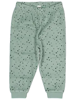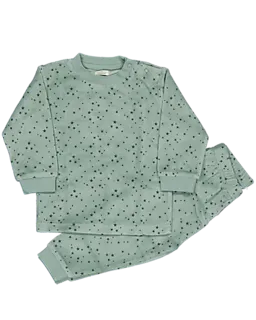 Deze pyjama voor baby's is gemaakt van zachte velours en heeft een groene kleur met een print van kleine sterretjes. De set bestaat uit een shirt met lange mouwen en een lange broek. Dankzij de elastische boorden bij de hals, mouwen en broekspijpen blijft de pyjama goed zitten en zit deze comfortabel. Geschikt voor koelere nachten of ontspannen momenten thuis.