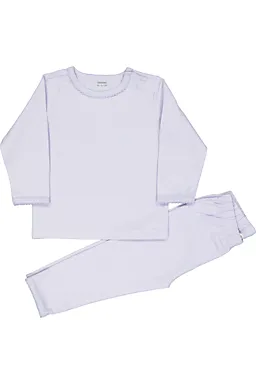 Deze paarse babypyjama bestaat uit een shirt met lange mouwen en een bijpassende broek. De stof valt soepel, zodat je baby makkelijk kan bewegen tijdens het slapen. Door de effen kleur oogt de pyjama rustig. De ronde hals en rechte broekspijpen zorgen voor een comfortabele pasvorm. Dankzij de zachte single jersey voelt het pyjamasetje prettig aan op de huid.