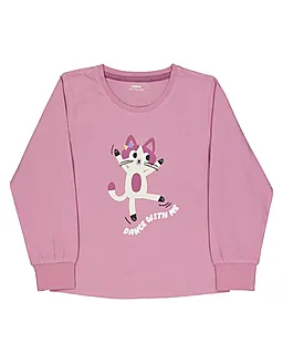 Deze lila pyjama voor meisjes is gemaakt van 100% katoen en bestaat uit een top met lange mouwen en een lange broek. Op het shirt staat een vrolijke kattenprint met de tekst 'Dance with me', waardoor de pyjama een speelse uitstraling krijgt. De zachte single jersey stof voelt prettig aan, zodat je kind comfortabel kan slapen.