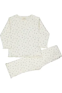 Deze witte babypyjama bestaat uit een shirt met lange mouwen en een lange broek. De zachte stof met ribstructuur voelt licht aan. Het subtiele bloemenmotief zorgt voor een rustige uitstraling. Dankzij de lange mouwen en broekspijpen blijft je baby warm wanneer het wat frisser is. De soepele stof maakt aan- en uittrekken makkelijk.