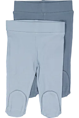 Deze set van twee blauwe pyjamabroeken voor baby's heeft voetjes, zodat de voeten tijdens het slapen lekker warm blijven. De zachte en soepele stof voelt prettig op de huid, waardoor je comfortabel slaapt of ontspant. Dankzij de elastische tailleband trek je de broekjes gemakkelijk aan en zitten ze fijn. Door de effen kleuren kun je ze goed combineren met andere kleding.