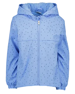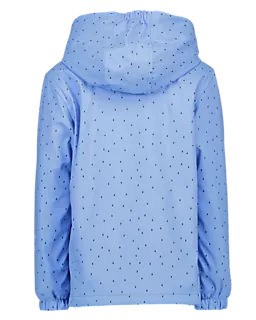 Deze blauwe regenjas voor jongens en meisjes heeft een capuchon en lange mouwen, waardoor je goed beschermd bent tegen regen en wind. De buitenkant is van polyurethaan en de voering van polyester, zodat de jas stevig en comfortabel draagt. De rits aan de voorkant en de elastische mouwuiteinden zorgen dat je de jas makkelijk aantrekt en droog blijft tijdens een buitje.