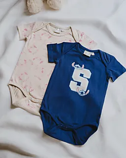 Deze navy romper met Stitch is gemaakt van zachte single jersey en heeft korte mouwen. De romper heeft een envelophals en comfortabele naden, wat prettig is voor de gevoelige huid van baby's. Je trekt hem gemakkelijk aan en uit door de envelophals en de drukknopen aan de onderkant.