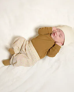 Dit bruine babyrompertje heeft lange mouwen en een handige overslag aan de voorkant. De ribstof voelt zacht en rekt licht mee, zodat het rompertje prettig aansluit op het lijfje van je baby. Dankzij de drukknopen onderaan kun je het rompertje eenvoudig aan- en uittrekken tijdens het verschonen. Dit rompertje houdt je baby comfortabel en warm.