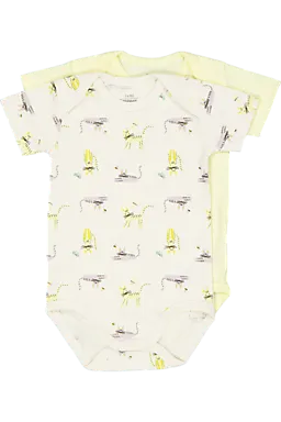 Deze rompertjes voor baby's zijn gemaakt van single jersey, waardoor ze zacht aanvoelen op de huid. Het ene rompertje is lichtgeel, het andere rompertje heeft een speelse print met katten. De korte mouwen geven extra bewegingsvrijheid en het dunne tricot rekt licht mee, zodat je het rompertje makkelijk aantrekt en alles prettig blijft zitten. De subtiele print zorgt voor een speelse uitstraling, zonder opvallende knopen of drukke details.