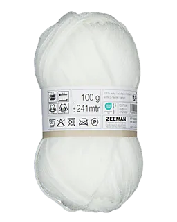 Dit witte Royal breigaren zit op een bol van 100 gram en is 241 meter lang, waardoor je genoeg hebt voor verschillende projecten. Het garen is geschikt voor breinaalden van 4-5 mm en haaknaalden van 5-6 mm, zodat je makkelijk kunt variëren. Een proeflapje van 10 x 10 cm bevat 18 steken en 28 naalden, zodat je je maat goed kunt controleren. Toch een bol te veel aangeschaft? Kom binnen een jaar terug met de aankoopbon. Dan krijg je gewoon je geld terug.