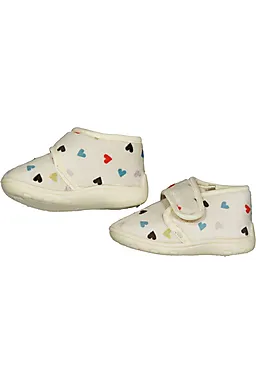 Deze beige babyslofjes hebben kleine hartjes in verschillende kleuren, zoals rood, blauw en zwart. De klittenbandsluiting zorgt ervoor dat de slofjes stevig om de voetjes blijven zitten, zodat ze niet snel uitgaan als je baby beweegt. De zachte voering voelt prettig aan, waardoor de slofjes comfortabel zijn. Door het vrolijke en praktische ontwerp zijn ze geschikt voor baby’s.
