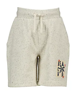 Deze beige jongensshort heeft korte pijpen en is gemaakt van zachte french terry, waardoor hij prettig aanvoelt. De elastische tailleband met trekkoord rekt mee, zodat je de short makkelijk aantrekt en hij goed blijft zitten. Op het been staat een kleine palmboom met het woord 'BEACH', wat zorgt voor een zomerse look. Dankzij de steekzakken neem je eenvoudig kleine spullen mee.