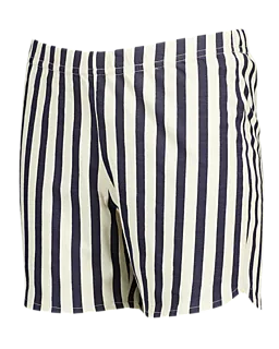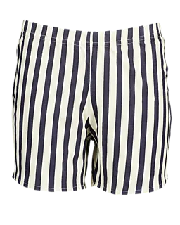 Deze korte meisjesbroek heeft verticale beige en donkerblauwe strepen, waardoor de broek een opvallende uitstraling krijgt. De zachte en soepele jersey stof rekt prettig mee als je beweegt, zodat je comfortabel zit. Door de klassieke kleurencombinatie kun je de broek makkelijk combineren met verschillende tops. De rechte, korte pijpen geven je extra bewegingsvrijheid op warme dagen.