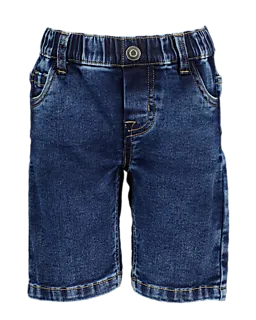 Deze donkerblauwe jongensshort is gemaakt van stevig denim en heeft een korte lengte. De elastische tailleband met knoop zorgt ervoor dat je de broek makkelijk aantrekt en hij prettig blijft zitten. Zo kun je comfortabel bewegen tijdens het spelen. De short heeft twee voorzakken en twee achterzakken, zodat je kleine spullen makkelijk meeneemt.