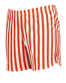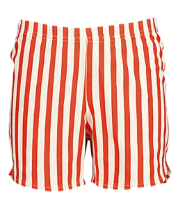 Deze meisjes short heeft oranje-witte strepen en is gemaakt van soepele single jersey. De elastische tailleband zorgt ervoor dat je de short makkelijk aan- en uitdoet en dat hij prettig zit. Dankzij de zachte stof kun je vrij bewegen. Het gestreepte dessin geeft de short een vrolijke uitstraling. Fijn voor warme dagen of om in te spelen.