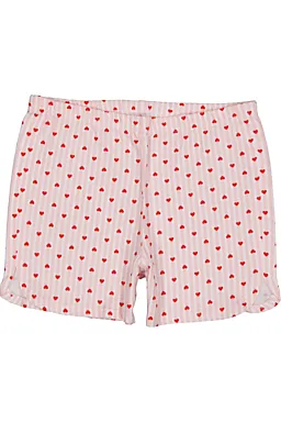 Deze roze meisjes shortama bestaat uit een T-shirt met korte mouwen en een ronde hals. Op de borst zit een klein rood hartje. De korte broek is roze met rode stippen. De stof is van 100% katoen, waardoor het geheel zacht en ademend aanvoelt. Het comfortabele model zorgt ervoor dat je prettig slaapt, ook als het buiten warm is.
