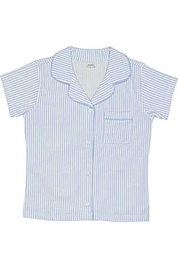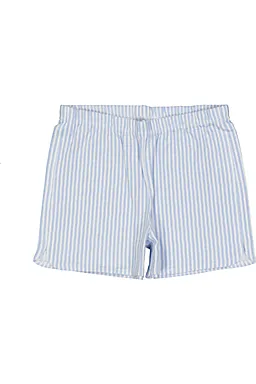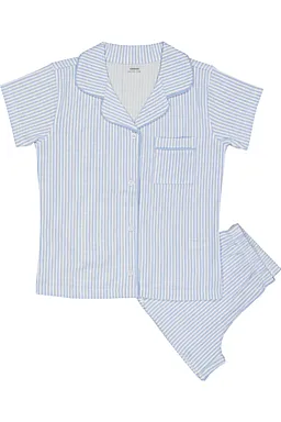 Deze witte meisjespyjama bestaat uit een T-shirt met korte mouwen en een korte broek. De fijne streep in de stof geeft een rustige uitstraling, zodat je comfortabel de nacht ingaat. Dankzij de doorknoopsluiting kun je het T-shirt makkelijk aan- en uittrekken. De set is gemaakt van katoen, waardoor de stof zacht aanvoelt op je huid. Geschikt voor warme nachten.