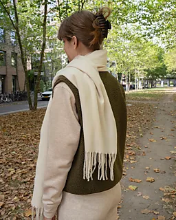 Deze witte sjaal voor dames heeft een lengte van 200 centimeter en een breedte van 57 centimeter. De franjes aan de zijkanten geven de sjaal een eenvoudige uitstraling. Met een gewicht van 180 gram is deze sjaal licht en gemakkelijk te dragen.