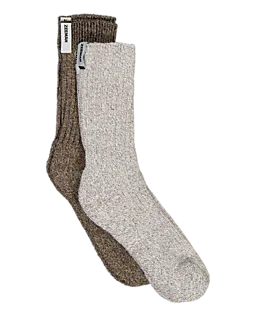 Deze set bestaat uit twee paar dames sokken in verschillende tinten bruin. De sokken hebben een grofgebreide structuur en een zichtbare ribbel aan de bovenkant. Aan de schacht zit een klein label met een merknaam. Ze zijn geschikt om je voeten warm te houden en bieden comfort bij dagelijks gebruik. Ideaal voor in je schoenen of om thuis te dragen.