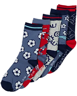 Deze set van 5 sokken heeft verschillende voetbalprints en de kleuren donkerblauw, rood en grijs. De sokken zijn gemaakt van katoen, polyester en elastaan, waardoor ze stevig en licht rekbaar zijn. Door het zachte materiaal zitten ze comfortabel om je voeten, zodat je ze prettig draagt tijdens het sporten of in je vrije tijd.