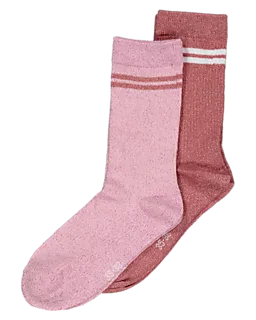 Deze dames sokken zijn lichtroze en donkerroze en worden geleverd per set van twee. De mix van katoen, polyamide, metaalvezel en elastaan maakt ze zacht en licht rekbaar, zodat ze prettig aanvoelen. De dubbele streep bovenaan zorgt voor een sportief accent. Dankzij de elastische boord blijven de sokken goed zitten en schuiven ze niet in je schoenen.