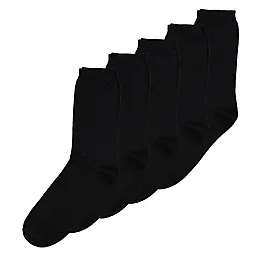 Deze set bestaat uit vier paar zwarte damessokken die gemaakt zijn van katoen, polyester en een beetje elastaan. Door deze mix voelen de sokken zacht aan en rekken ze prettig mee, zodat ze goed aansluiten rond je voet. Dankzij de comfortabele stof zitten de sokken fijn in je schoenen, de hele dag door.