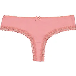 Set van twee damesstrings in roze tinten. Gemaakt van 95% katoen en 5% elastaan, waardoor de strings een fijne pasvorm hebben. De randen zijn afgewerkt met fijn kant en er zit een klein strikje aan de voorkant. De elastische stof zorgt ervoor dat de strings goed aansluiten en prettig zitten.