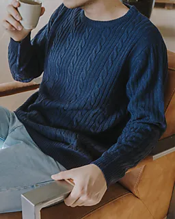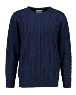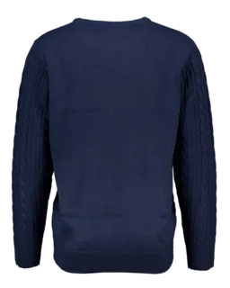 Deze donkerblauwe herensweater heeft een kabelstructuur op de voorkant en mouwen, waardoor hij een stevige uitstraling krijgt. De ronde hals en de geribde boorden bij de mouwen en onderkant zorgen dat de trui goed aansluit. De sweater is gemaakt van 100% acryl, zodat hij zacht aanvoelt en warmte geeft. Je draagt deze trui makkelijk over een T-shirt.