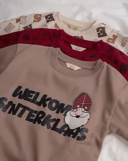Deze bruine jongenssweater heeft een vrolijke Sinterklaasprint op de voorkant. De trui is gemaakt van een zachte katoen-polyestermix en heeft lange mouwen voor extra warmte. De geribde boorden bij hals, mouwen en onderkant zorgen ervoor dat de sweater goed aansluit en prettig blijft zitten.