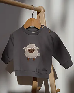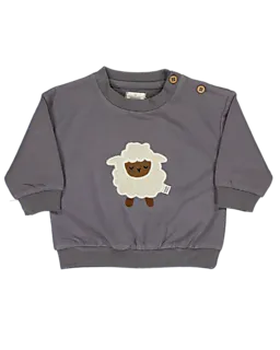 Deze grijze unisex sweater voor pasgeborenen is gemaakt van French terry en heeft lange mouwen. Op de voorkant staat een schattige afbeelding van een schaap. De hals is rond en voorzien van twee knoopjes op de schouder, wat het aan- en uittrekken vergemakkelijkt. De boorden aan de mouwen en onderkant zorgen voor een comfortabele pasvorm.