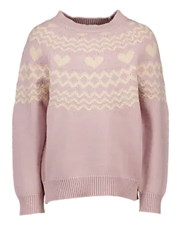 Deze paarse jongenssweater is gebreid van een mix van viscose, polyester en polyamide. De trui heeft een ronde hals en lange mouwen. Op de bovenkant zijn lichte hartjes en zigzagpatronen verwerkt, wat zorgt voor een speels effect. De boorden aan hals, mouwen en onderkant zijn geribd voor extra comfort. Ideaal voor frisse dagen.