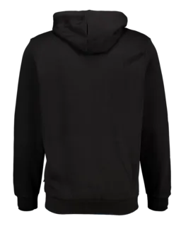 Deze zwarte Puma sweater heeft lange mouwen, een capuchon met trekkoorden en een grote buidelzak aan de voorkant, waardoor je je handen makkelijk warm houdt. Dankzij de samenstelling van katoen en polyester voelt de trui zacht aan en blijft hij prettig zitten. Draag deze sweater als extra laag wanneer het kouder is.