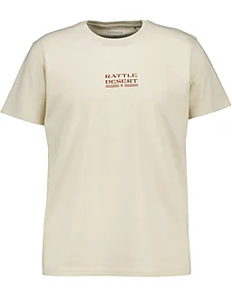 Dit beige T-shirt voor heren is gemaakt van 100% katoen en heeft korte mouwen. De ronde hals en de opdruk ‘Battle Desert’ op de borst geven het een eenvoudige uitstraling. De zachte katoenen stof voelt prettig aan op je huid, waardoor je comfortabel kunt bewegen. De effen kleur maakt het T-shirt makkelijk te combineren met verschillende broeken.