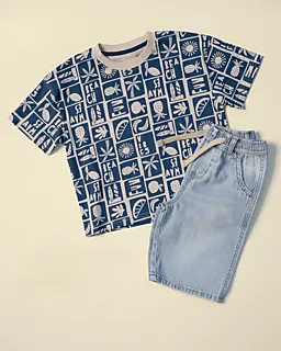 Dit donkerblauwe T-shirt voor jongens heeft een witte print met tropische figuren en woorden als 'BEACH' en 'VIBES'. De soepele stof en korte mouwen zorgen ervoor dat je makkelijk beweegt. De ronde hals sluit prettig aan zodat het shirt comfortabel zit. Het luchtige model maakt dit T-shirt geschikt om te dragen op warmere dagen.