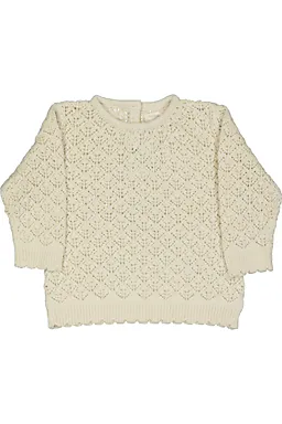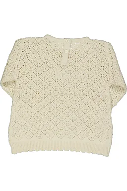 Deze beige babytrui heeft een opengewerkt breisel en lange mouwen. De ronde hals en de gebreide boorden sluiten goed aan, zodat de trui op zijn plaats blijft tijdens het bewegen. Dankzij de zachte stof voelt de trui prettig op de huid, waardoor je hem graag draagt op frisse dagen. Het eenvoudige dessin past makkelijk bij elke outfit.