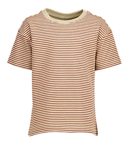 Dit beige T-shirt voor jongens heeft korte mouwen en een ronde hals. De stof heeft een rood-wit gestreept patroon, waardoor je een speelse uitstraling krijgt. De rechte pasvorm zorgt ervoor dat het T-shirt lekker zit tijdens verschillende activiteiten. Dankzij de zachte boord voelt de hals comfortabel aan, zodat je je de hele dag vrij kunt bewegen.