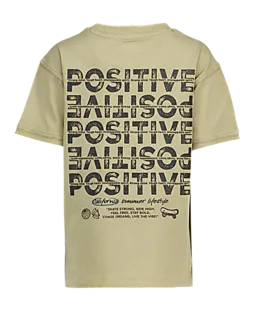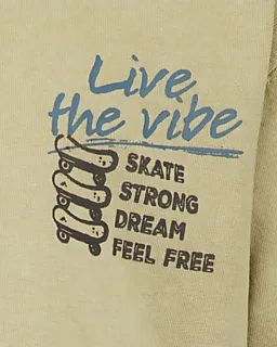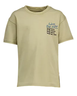 Dit taupekleurige jongens T-shirt heeft korte mouwen en een ronde hals, waardoor je makkelijk kunt bewegen en het prettig zit. Op de borst staat de tekst 'Live the vibe' met een kleine print, wat voor een speels detail zorgt. De jersey stof is soepel, zodat het shirt comfortabel aanvoelt tijdens allerlei activiteiten.