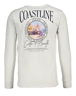 Dit witte T-shirt voor heren is gemaakt van 100% katoen, waardoor de stof zacht aanvoelt op je huid. De ronde hals en lange mouwen zorgen voor extra bedekking en comfort, zodat je hem gemakkelijk in verschillende seizoenen draagt. Op de borst staat een kleine print met de tekst ‘Coastline Amalfi’ die het shirt een sportieve uitstraling geeft.