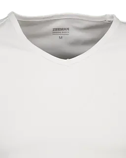 Dit witte T-shirt voor heren is gemaakt van katoen met een beetje elastaan, waardoor de stof stevig aanvoelt en licht meerekt. Door de V-hals is het T-shirt goed te dragen onder een overhemd. En de korte mouwen maken het T-shirt geschikt voor warmere dagen of als ondershirt. De zoom bij de hals is smal en stevig afgewerkt, waardoor deze mooi in vorm blijft. Een goede basic die prettig zit en geschikt is om te combineren met verschillende outfits.
