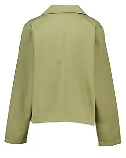 Deze groene dames trenchcoat heeft een kort model en dubbele knopen aan de voorkant voor een klassieke uitstraling. Dankzij de striksluiting onderaan kun je de pasvorm makkelijk aanpassen, waardoor hij altijd goed afsluit. De buitenstof bestaat uit polyester, wat bijdraagt aan een stevige en gladde afwerking. Geschikt voor frisse dagen wanneer je extra laagje nodig hebt.