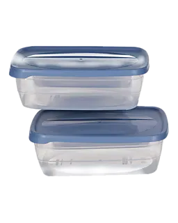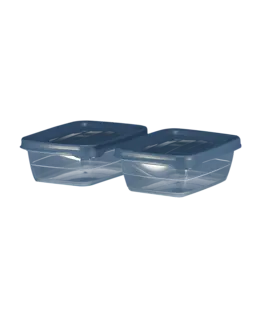 Deze set bestaat uit twee vershouddozen met een blauwe deksel. Door de doorzichtige bak zie je meteen wat erin zit, zodat je snel vindt wat je zoekt. Het stevige kunststof zorgt ervoor dat de dozen goed blijven in de koelkast of kast. Door de rechthoekige vorm kun je ze makkelijk stapelen, waardoor je keuken netjes en overzichtelijk blijft.