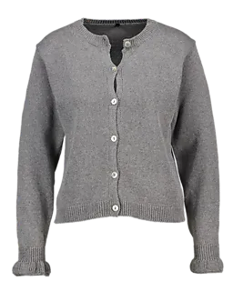 Dit grijze vest heeft een ronde hals en sluit aan de voorkant met knopen. De lange mouwen en onderkant zijn afgewerkt met een brede ribboord, zodat ze goed aansluiten. Het gemêleerde uiterlijk geeft het vest een rustige uitstraling. Je draagt dit vest makkelijk over een shirt of blouse voor wat extra warmte op koudere dagen.