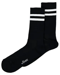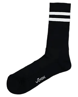 Deze zwarte sokken hebben twee witte strepen aan de bovenkant, wat zorgt voor een sportieve uitstraling. Door de zachte stof voelen ze comfortabel aan, zodat je ze prettig de hele dag kunt dragen. Het eenvoudige ontwerp maakt ze makkelijk te combineren met verschillende outfits.