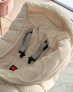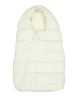 Deze beige voetenzak is geschikt voor baby's en heeft een gewatteerde, zachte uitstraling. De voetenzak sluit met een rits die schuin over de voorkant loopt, wat het gemakkelijk maakt om je baby in en uit de zak te halen. Door de samenstelling van viscose en polyamide met een polyester voering en vulling blijft je baby comfortabel en warm tijdens koudere dagen.