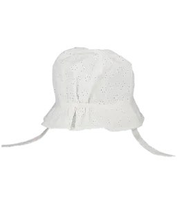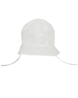 Deze witte zonnehoed heeft een subtiel opengewerkt patroon, waardoor er lucht door de stof kan en je hoofdje koel blijft op zonnige dagen. De touwtjes aan beide kanten zorgen ervoor dat het hoedje goed blijft zitten, zodat het niet snel afwaait. Dit model is speciaal gemaakt voor baby's en sluit daardoor comfortabel en veilig aan bij kleine kinderen.