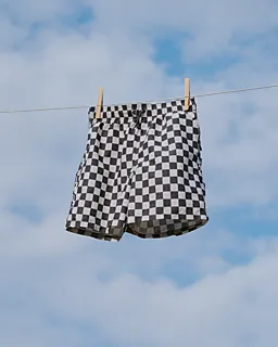 Deze blauwe jongenszwembroek is gemaakt van 100% polyester en heeft een geruit patroon in blauw en wit. De elastische tailleband met strikkoord zorgt ervoor dat je de broek makkelijk aantrekt en dat hij goed blijft zitten tijdens het zwemmen of spelen. Dankzij de lichte, geweven stof droogt de broek snel na het zwemmen, zodat hij prettig blijft aanvoelen.