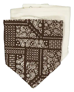 Este conjunto inclui dois babetes. Um babete tem um padrão paisley marcado com detalhes em branco e o outro é liso em branco. O tecido macio assenta bem na pele, para que o seu bebé fique confortável durante as refeições. O formato amplo protege bem a roupa de manchas, para que tenha de a trocar menos vezes.