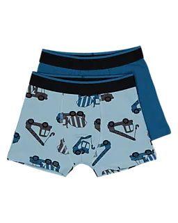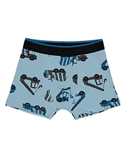 Estas cuecas para crianças são confeccionadas em azul e azul-claro com uma estampa de guindastes. São feitas de algodão com um pouco de elastano, o que garante conforto e elasticidade. As cuecas têm uma cintura elástica preta com uma faixa azul.