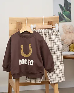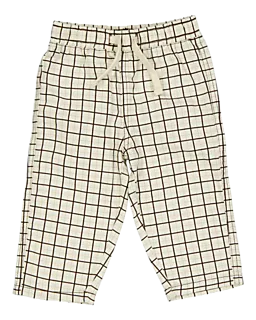 Estas calças de bebé em bege têm um padrão de quadrados preto que se destaca de imediato. A cintura elástica com cordão estica bem, por isso veste facilmente e mantém-se confortável. O tecido leve e flexível dá ao bebé muita liberdade de movimento enquanto brinca ou gatinha. As pernas direitas caem de forma simples ao longo das pernas, criando um look suave e descontraído.