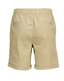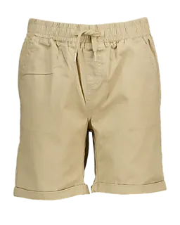 Estes calções bege para rapaz têm uma cintura elástica com cordão, para que possa ajustar facilmente e fiquem confortáveis. Os calções são de cor lisa e têm um bolso aplicado à frente. As pernas direitas com a bainha dobrada permitem movimentos livres, tornando-os adequados para várias atividades. O tecido é macio e confortável de usar.