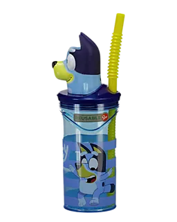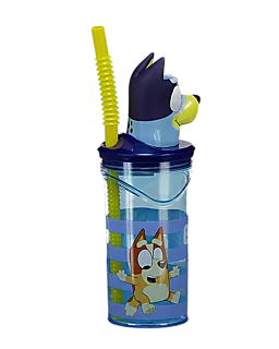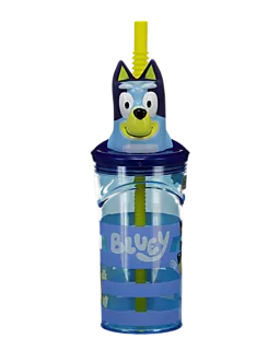 Este copo azul tem uma figura do Bluey na tampa e uma palhinha amarela, para beber facilmente sem entornar. O copo é feito de polipropileno resistente e é leve na mão, para usar de forma cómoda durante a bebida. Graças ao design transparente, vê rapidamente quanto ainda há no copo.